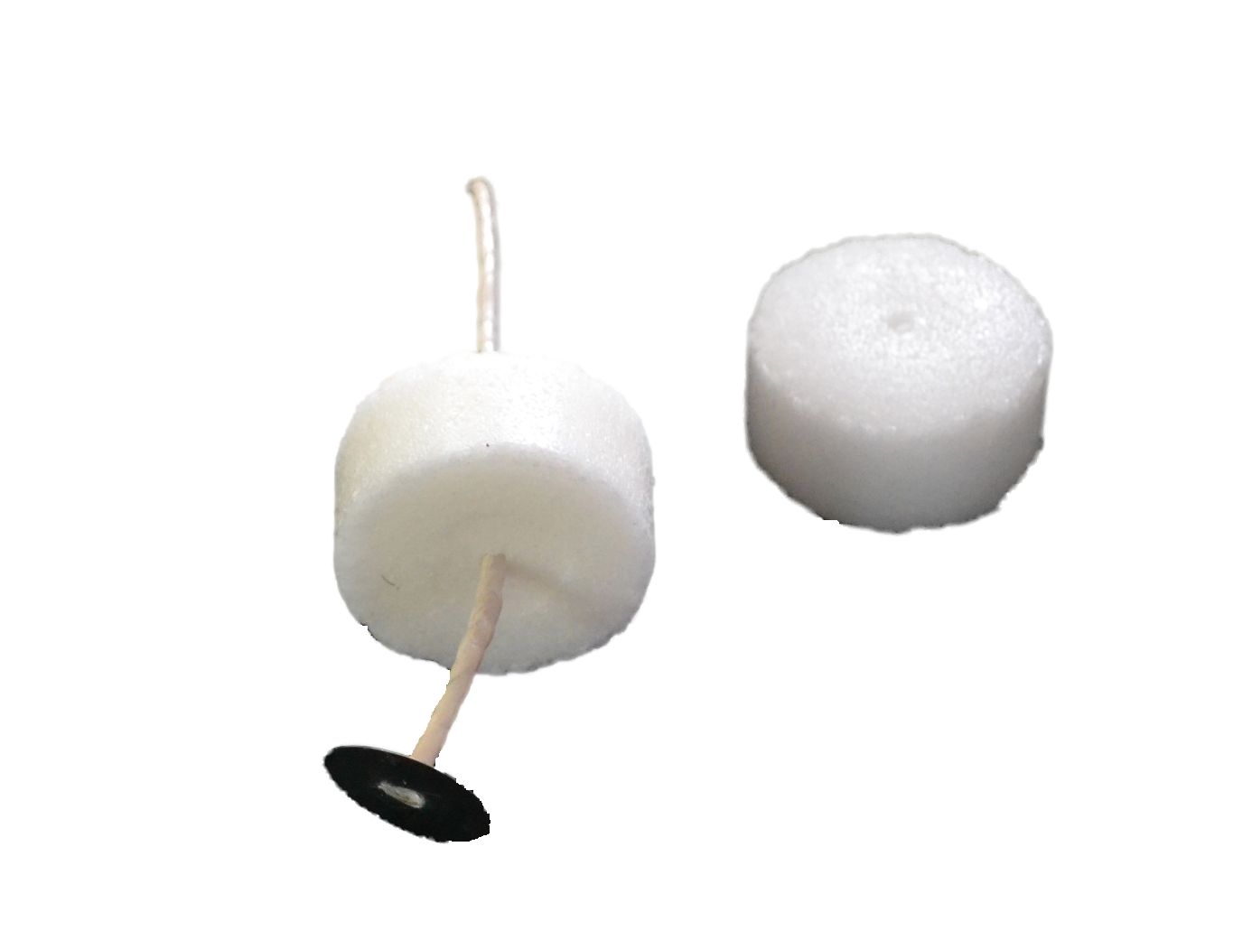 The cores are made from white paraffin wax.